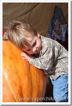 He was giving the giant pumpkin a hug. My sweet boy!