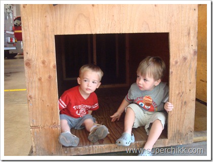 The firemen have a maze they use for training. The boys loved it, and I imagine they had a much easier time navigating the tight spaces than the big guys with all their equipment on.